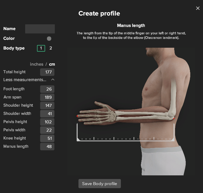 수트를 착용하는 사용자의 신체수치를 가능하면 정확하게 입력합니다.