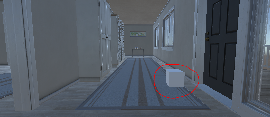 기본적인 Cube 3D 오브젝트를 건물안 아무곳에나 배치했습니다.