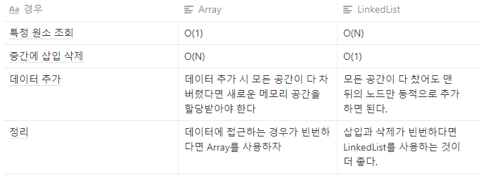 그동안 흐릿하게 알고 있었던 링크드 리스트와 배열의 차이점에 대해 보다 명확하게 이해할 수 있는 시간이었습니다.