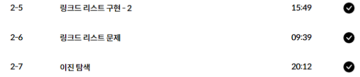 2주차 커리큘럼에는 면접에서도 자주 질문이 나오며, 여러가지 알고리즘에서 많이 사용하는 링크드 리스트와 배열에 대한 이야기들부터 이진 탐색과 나중에 배울 DFS, BFS에 사용되는 재귀함수까지 실려있었다.