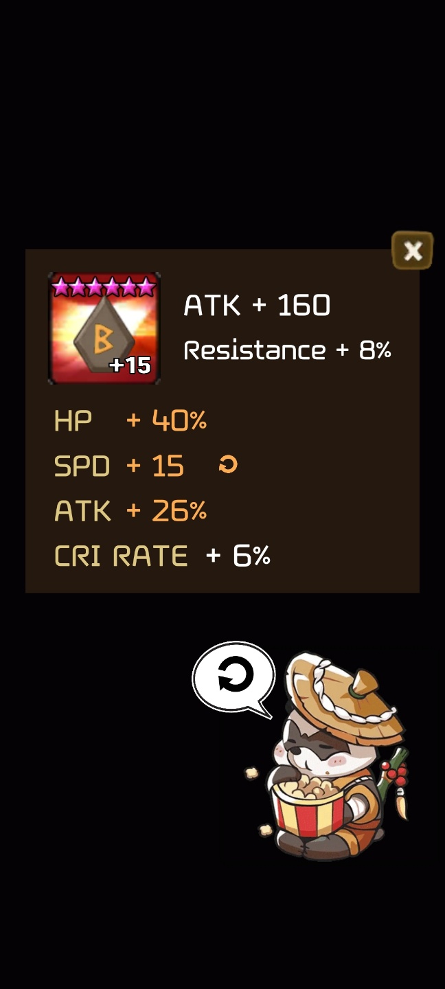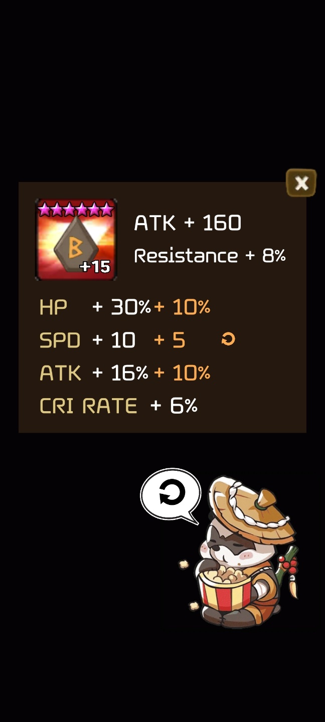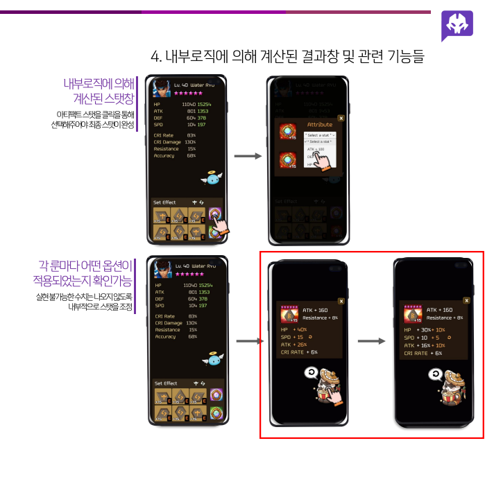 - 결과창에서 룬 클릭 시 나타나는 창에서 풍팬더를 클릭 했을 때 연마된 스탯 수치를 표시.