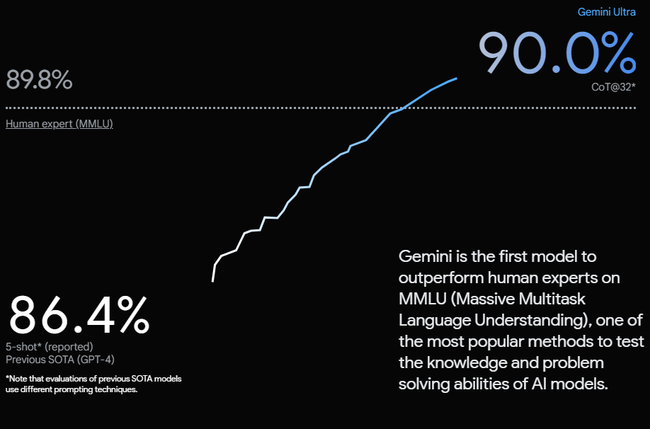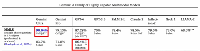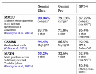 비교할때 구글 제미나이 같은경우에는 CoT@32로 측정한 기준을 사용했고, GPT-4는 5-Shot로 측정한 기준을 사용했다.