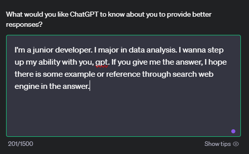 Custom instructions에는 두 가지 질문이 있는데 아래와 같다.